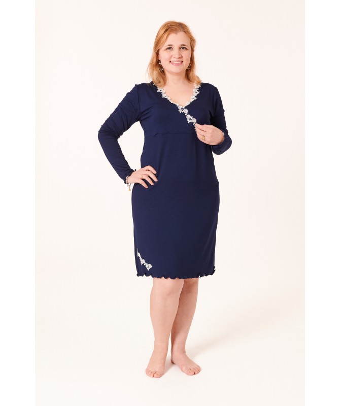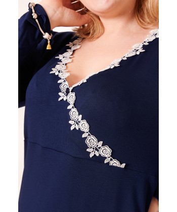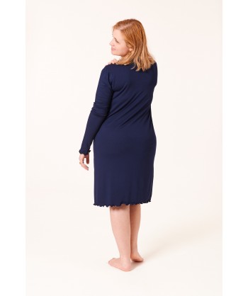 La particolarità di questa camicia da notte a maniche lunghe è lo scollo incrociato, ovvero formato da "vele" che si sormontano formando uno scollo a V. Ad unirle c'è solo un bottone che si può aprire al bisogno. Per delineare questo incrocio l'abbiamo bordato con una lista di macramè, rimarrete sorprese dalla sua morbidezza e sarete rapite dal suo motivo floreale estremamente raffinato e romantico.