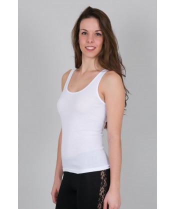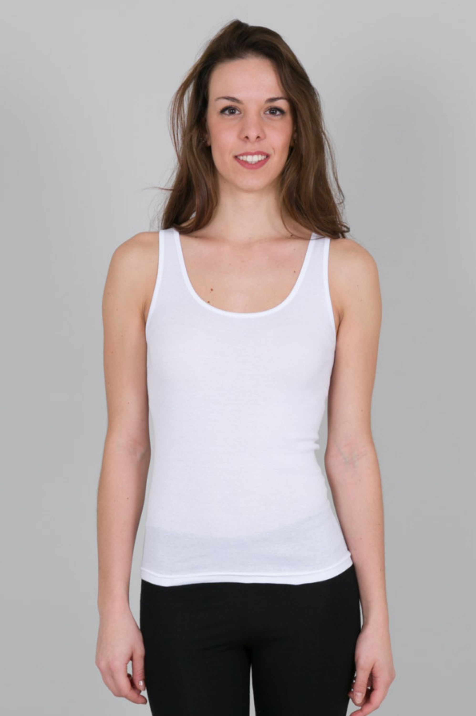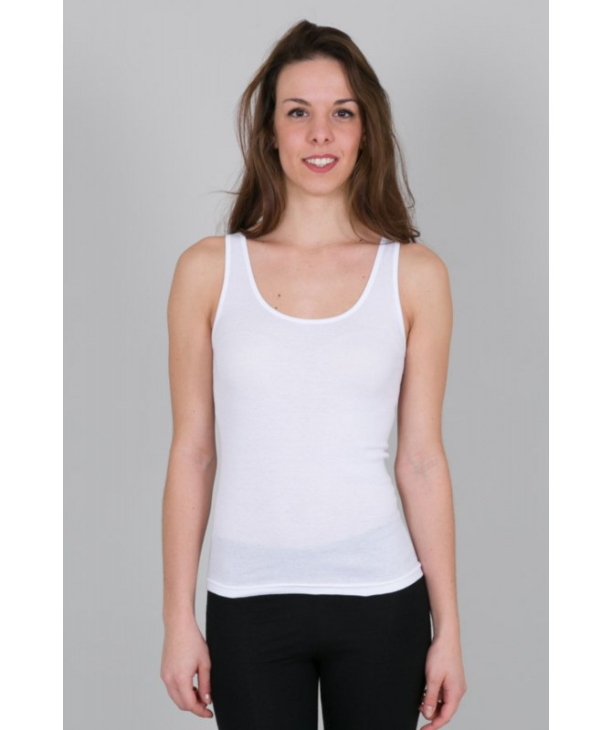 Canotta spalla larga in puro cotone con scollo tondo.