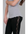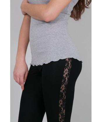 Maglia maniche corte in puro cotone con inserto in pizzo sullo scollo tondo.