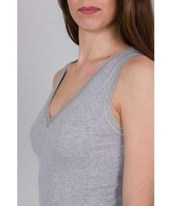 Canotta in puro cotone con spalline sottili, scollo tondo con inserto in pizzo.
