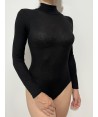 Body con maniche lunghe e collo alto. Realizzato con tessuto tubolare, quindi non presenta cuciture lungo i fianchi. Tessuto leggero e morbido, ma caldo, si tratta infatti di modal-cashmere.