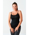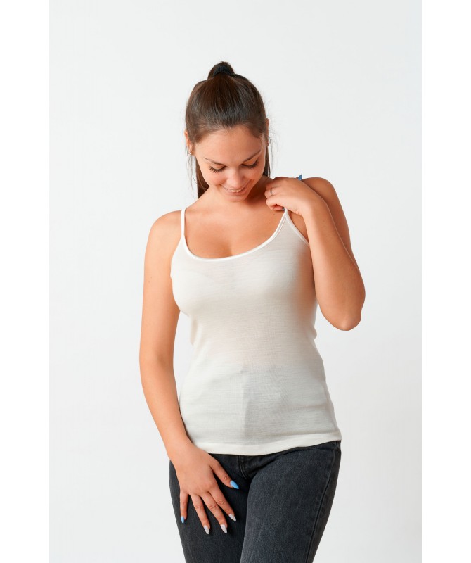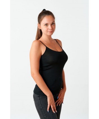 Canotta in microlana con spalline sottili e scollo a giro bordati in raso.