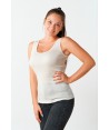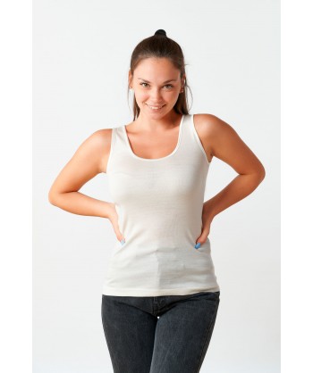 Canotta in microlana con spalline sottili e scollo a giro bordati in raso.