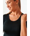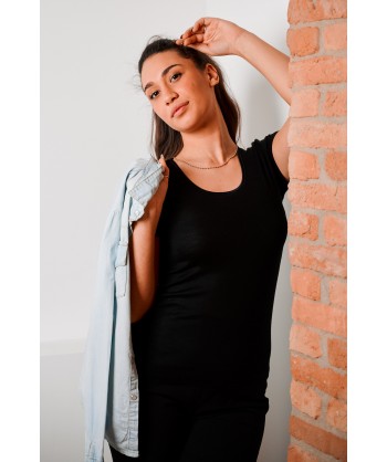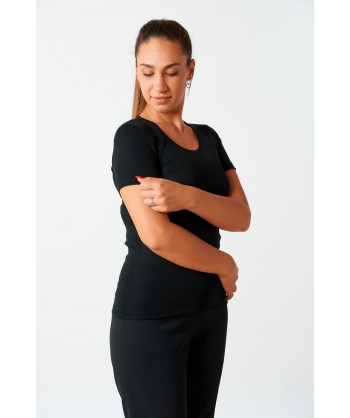 Maglia in microlana con maniche corte bordo in raso sullo scollo tondo.