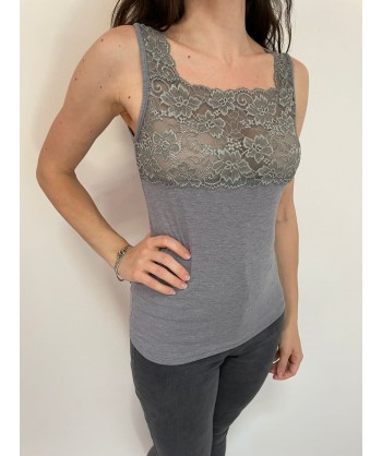 Canotta spalla larga in Modal con balza in pizzo