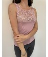 Canotta in modal spalla larga. L'unicità di questa canotta è la balza in pizzo che abbiamo inserito in trasparenza sul decolleté e sulle spalline. Si tratta di un pizzo di alta qualità, morbidissimo ed elasticizzato, molto raffinato nella sua lavorazione floreale, lucente e in rilievo.