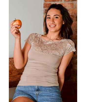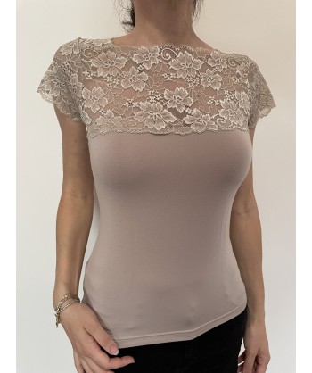 maglia in modal con maniche corte in pizzo