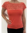 Maglia in modal con maniche corte. L'unicità di questa canotta è la balza in pizzo che abbiamo inserito in trasparenza sul decolleté e per realizzare le maniche. Si tratta di un pizzo di alta qualità, morbidissimo ed elasticizzato, molto raffinato nella sua lavorazione floreale lucente e in rilievo.