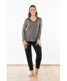 Pigiama maniche lunghe e scollo a V, la lista in pizzo che abbiamo applicato a V su scollo e sottoseno, creano un incrocio che sottolinea il seno.
